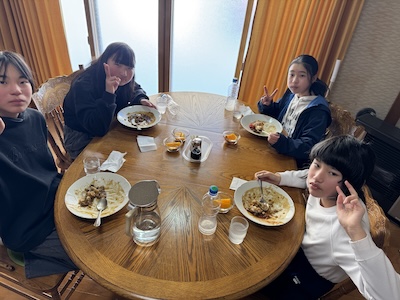 6:30起床→7:00朝食→9:00スキーレッスン→11:00 12:00昼食・片付け→13:10宿舎出発