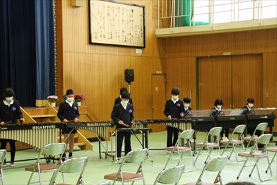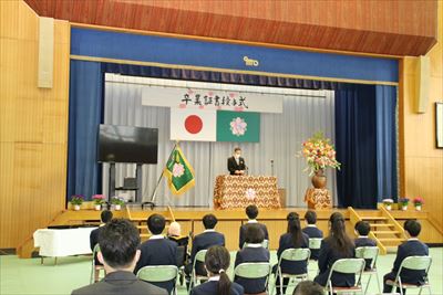 令和3年度 卒業証書授与式を行いました2022年03月18日 3月18日(金)に令和3年度の卒業証書授与式を行いました。コロナ禍のため、今年度の卒業式も4・5・6年生が体育館で、1・2・3年生は教室でリモート中継を見ながら、参加することとしました。 あたたかいながらも厳粛な雰囲気の中で式が行われました。校長先生からは、夢をあきらめないことの大切さのお話がありました。 在校生からはビデオメッセージ。そして、卒業生からはお礼の合奏がありました。22名の6年生が巣立っていきました。