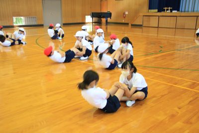 - 長座体前屈の前にだるまストレッチをしましょう