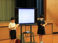 6年生が、修学旅行で学んできたことを全校のみんなに発表してくれました。