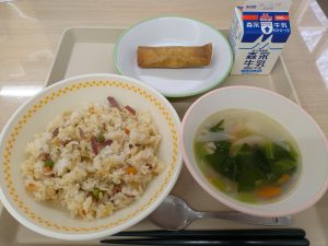 3学期初の給食は・・・?2026年01月08日 3学期の給食が今日から始まりました。 3学期最初の給食は、牛乳・焼き豚チャーハン・揚げ春巻き・大根入り中華スープでした。子ども達が大好きなメニューで、ペロリと食べ終わりました!残食もほぼゼロでした! 本年もどうぞよろしくお願いいたします。